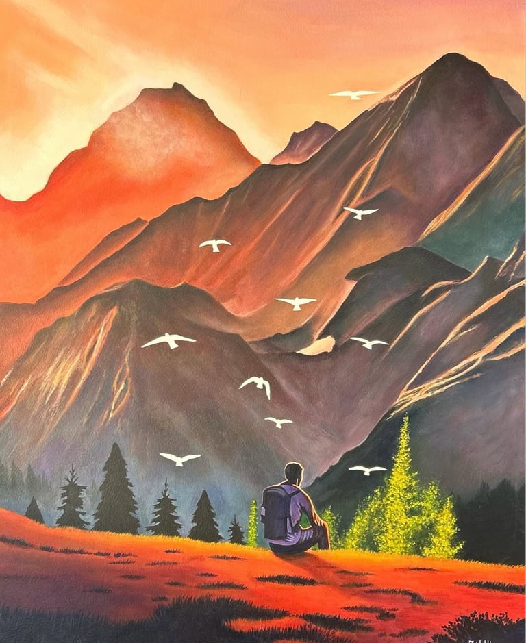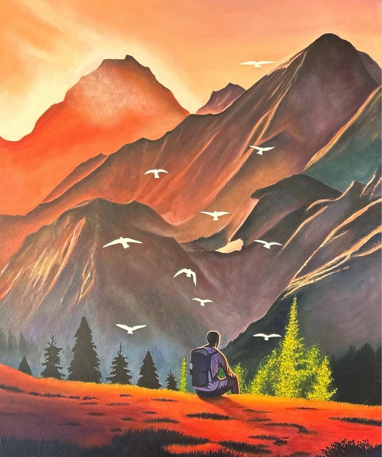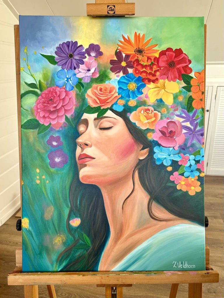 Acrylverf geschilderd op houten paneel, 60x80cm